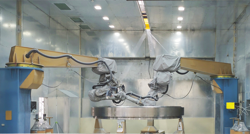 我公司为客户提供了风电行业轴承机器人自动喷涂生产线,成功为用户提高了质量,改善了操作者安全等困扰多年的瓶颈问题。